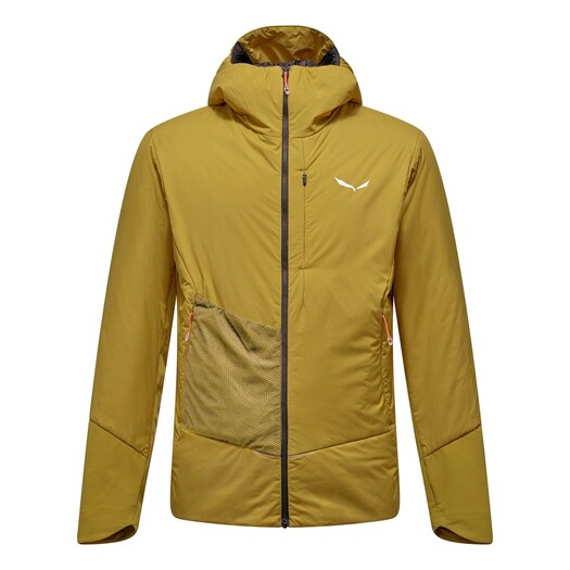Njena hibridna izolacija, prilagojena telesu, združuje Tirol Wool in poliester (75 % recikliran). Njene votle vlakna zadržujejo zrak, da vam pomagajo ohraniti toploto. Z izolirano kapuco, mrežastim prednjim žepom in diskretnimi odsevnimi detajli.