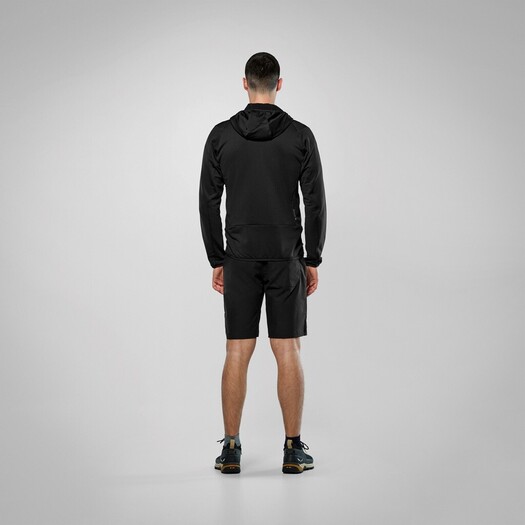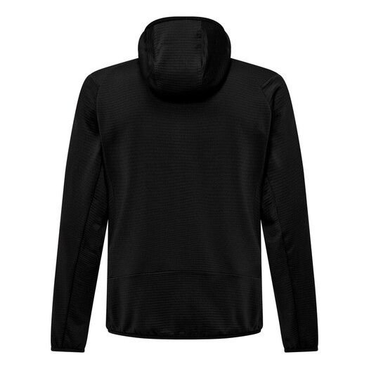Ta vsestranski srednji sloj je tudi krojen tako, da se dobro prilega pod trdo jakno. Ima dva stranska žepa z zadrgo, elastične manšete in robove ter toplo kapuco, ki ščiti pred mrazom.