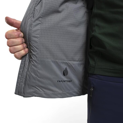Športna, lahka jakna s prešitimi puhovimi izolacijskimi komorami in podlogo VaporTemp za optimalno termoregulacijo. Raztegljivi vložki jo naredijo idealno za zimske aktivnosti.