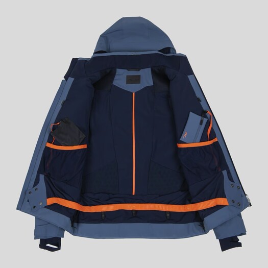 Jakna, znana po svojem brezčasnem slogu, se ponaša z raztegljivo 3D tehnologijo za popolno svobodo gibanja. Žep za telefon, podložen z grafenom, je bistvenega pomena za podaljšanje življenjske dobe baterije, ko temperature padejo. Raztegljiva izolacija KJUS FAST Thermo Core™ z grafensko podlogo pomaga uravnavati temperaturo, sistem KJUS AC-Vent™ na podlakteh pa zagotavlja dodatno uravnavanje temperature in udobje med vsako pustolovščino.