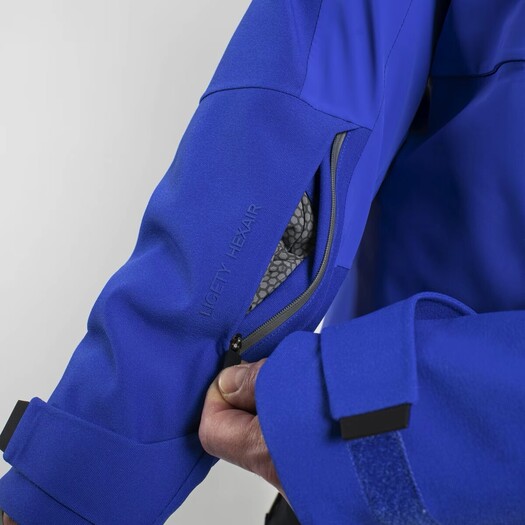Jakno, ki jo je zasnoval legendarni smučar Ted Ligety, je na ključnih mestih izdelana iz trpežne tkanine HexAir, ki zagotavlja več kot trikrat večjo trpežnost kot standardna smučarska tkanina KJUS, ne da bi pri tem žrtvovala raztegljivost ali zračnost. Grafen pomaga uravnavati telesno temperaturo, napredni prezračevalni sistem, vključno s KJUS AC-Vent™, pa zagotavlja nastavljiv pretok zraka za večje udobje. Žep za telefon, podložen z grafenom, podaljša življenjsko dobo baterije v hladnih