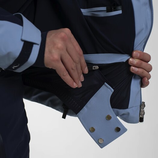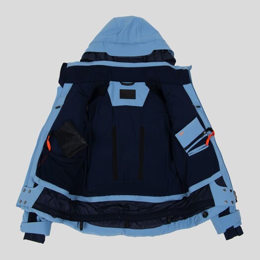 Izjemna jakna je izdelana iz inovativne tkanine, ki med proizvodnjo zajema ogljik iz zraka. Njena napredna zasnova združuje podlogo iz grafena, material, ki spreminja fazo, in recikliran puh s sintetičnimi izolacijskimi komorami za vrhunsko toploto in zmogljivost. Žep za telefon, podložen z grafenom, podaljša življenjsko dobo baterije v hladnih razmerah. Sistem Advance Ventilation System, skupaj z odstranljivo kapuco in snežnim krilom, ustvarja optimalen pretok zraka v toplejših smučarskih
