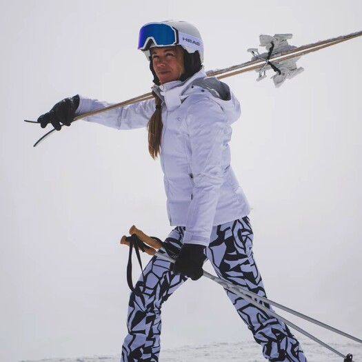 Te vodoodporne smučarske hlače iz softshella z modernim potiskom so tanke in podložene s flisom za toploto in stil na smučišču. Izboljšane so s štirismerno raztegljivim materialom in raztegljivim pasom za optimalno upogibnost in gibanje. Predhodno oblikovana kolena, dostop do smučarskih čevljev z zadrgo in robovi, odporni proti obrabi, za zaščito robov smuči zagotavljajo udobje in daljšo nošenje na smučišču.